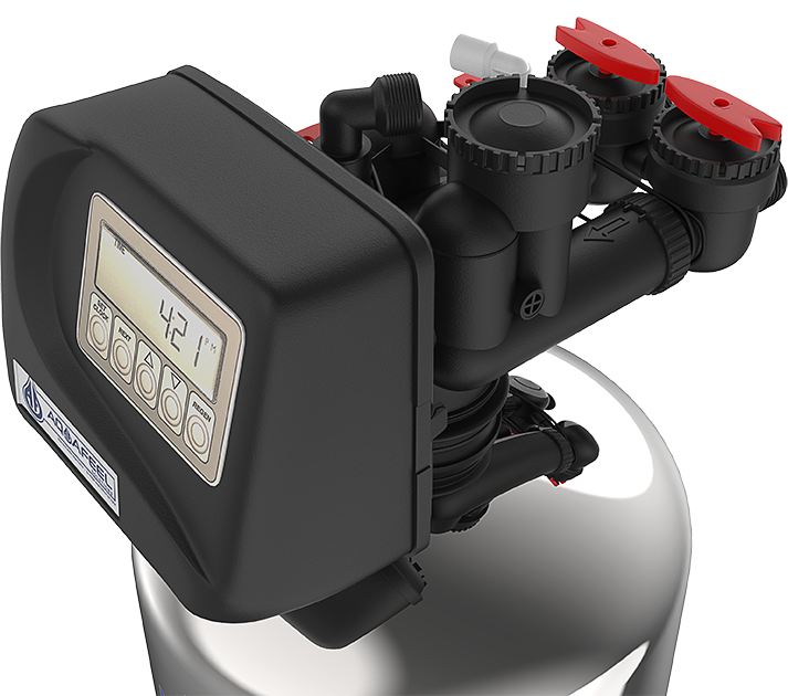 This process is controlled by an intelligent Control Valve located on the head of the Aquafeel system and a brine tank.
